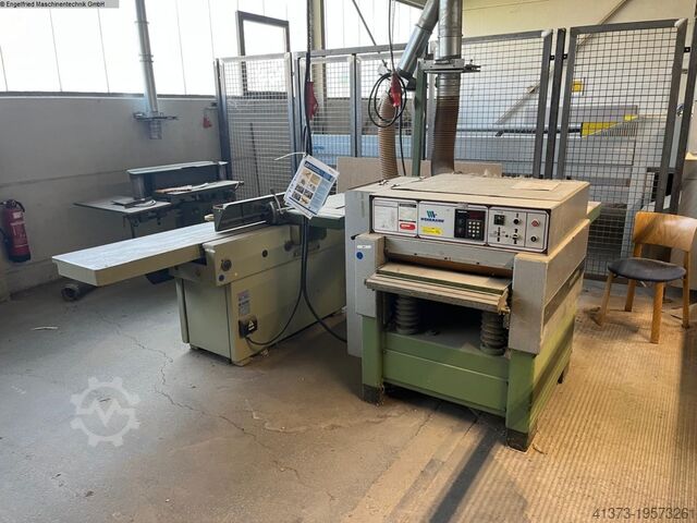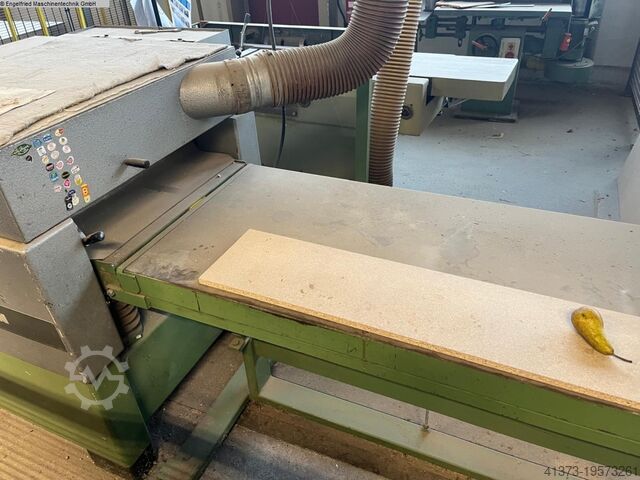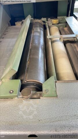Стол дополнительно оборудован скользящими валиками. Валики рифлёные (стальные) со стороны подачи. Регулировка толщины заранее программируется с электронным LED-дисплеем. Удлинение стола.