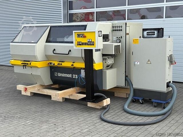 Строгально-колющий станок Weinig типа Unimat 23 SP для точного строгания (или предварительного строгания) и колки массива древесины за одну операцию. Станок обеспечивает высокое качество обработки и идеально подходит для эффективного серийного производства в деревообрабатывающей промышленности.