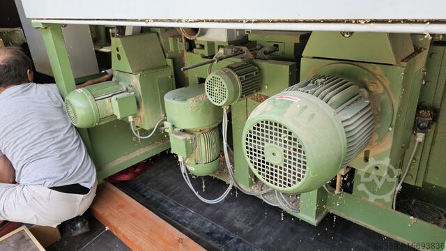 четырехсторонний строгальный станок с пятью строгальными шпинделями, последний шпиндель - одношпиндельный (с возможностью наклона)