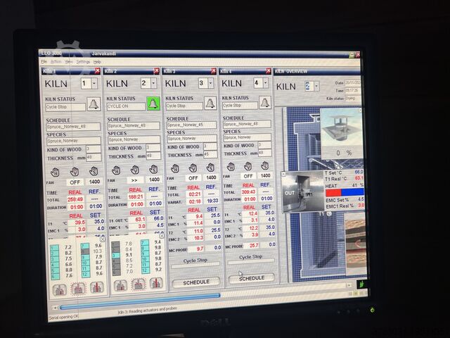 В каждой камере: 12 датчиков влажности древесины, 2 датчика температуры и 2 датчика влажности воздуха; 3 цифровых индикатора для этих параметров.