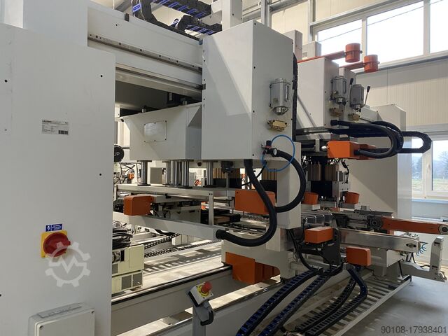 Это высокопроизводительный автоматический сверлильный центр для мебельных деталей. Станок предназначен, прежде всего, для крупного производства небольшими партиями. Сверлильный станок имеет возможность одновременного сверления двух деталей.