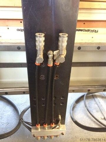 Сверлильный станок марки Camam модель FM V-0, год выпуска 2004, маркировка CE, система управления Magelis, с четырьмя вертикальными сверлильными головками, двумя горизонтальными и по одной головке для правой и левой стороны. В общей сложности 1 одношпиндельная головка и 7 многошпиндельных головок с 5 наконечниками, расположенными крест-накрест с шагом 32 мм. и/или 20 мм. максимальное отверстие около 2900 мм. Используется.