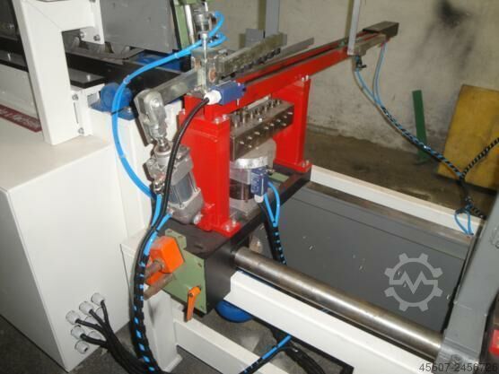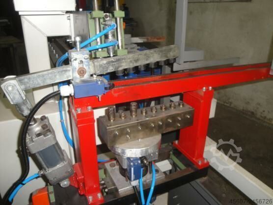 # 1299, сверлильный автомат с магазином, 3 сверлильных мотора с 2 шпинделями и 25 мм сеткой, фрезерный мотор для паза пола и цепной привод после общего ремонта и новые электрические и новые пневматические