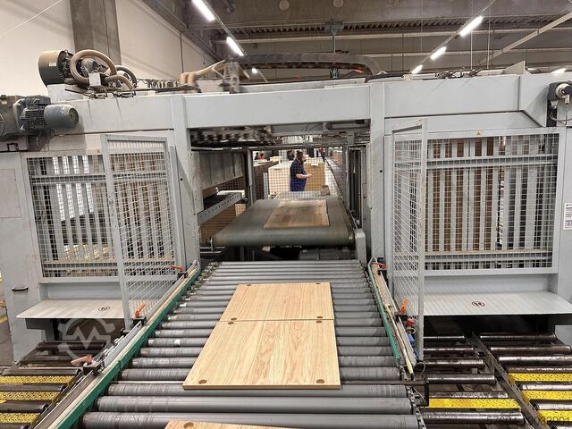 Автоматический загрузчик двух ячеек без приямка для использования в линии Перевод на моторизованную панель Двойная автоматическая станция загрузки панелей Система присосок для перемещения панелей Съемник панелей Панели также можно обрабатывать в два ряда. Полезная ширина панели 1300 мм Полезная длина панели 2500 мм Вакуумный насос Моторизованные трансферы для установки стопок панелей Автоматическая моторизованная регулировка горизонтальных опорных планок присосок с помощью числового программного управления Система программирования и управления ТЕХНИЧЕСКИЕ ДЕТАЛИ ДЛЯ ПРОВЕРКИ