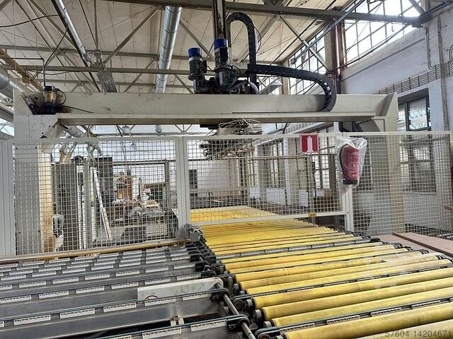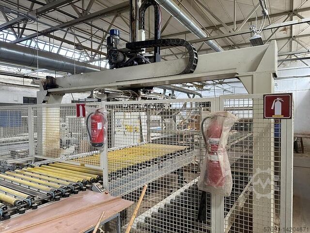 Штабелер с двумя накопительными станциями. Разработан для производственных линий для сверления, выравнивания, резки кромок,