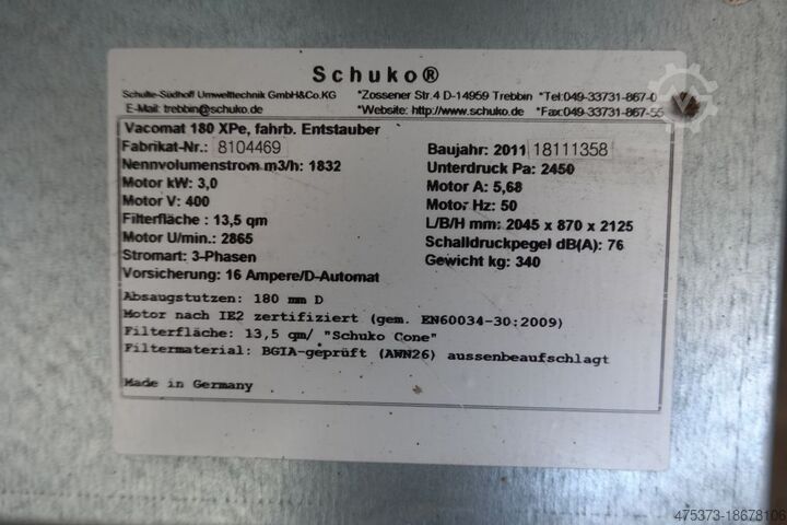 Пылеуловитель/вытяжка Schuko Vacomat 180 X Pe