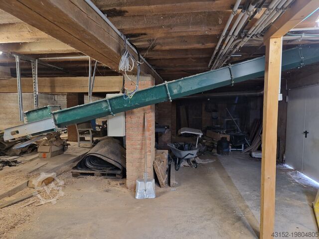 Длина транспортера около 7000 мм. Использовался для транспортировки щепы из рубильной машины.