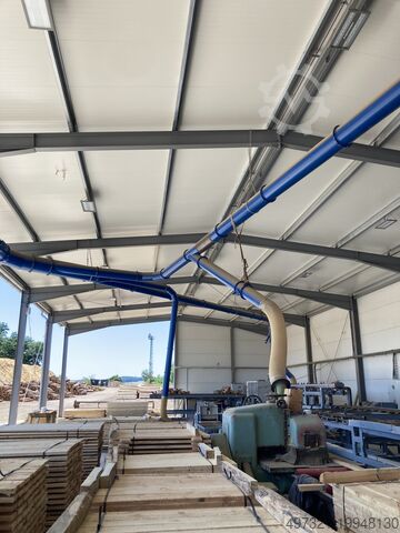 Полная система вытяжки для производственной линии по распилу леса LSH 350/4500. В эксплуатации с 01/2023. Оборудование не имеет производителя, состоит из отдельных компонентов. Установлено на основании расчетов, документация в наличии.