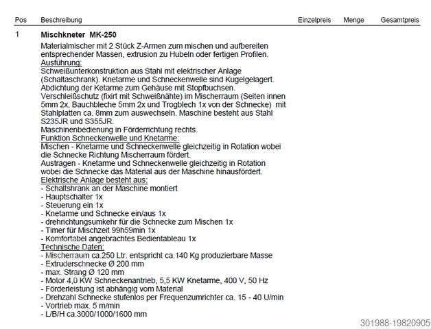 Наша тестомесильная машина в данный момент находится на нашем складе в Болгарии и в настоящее время больше не используется. Она полностью исправна и при интересе может быть осмотрена на месте. При серьезном интересе мы с удовольствием организуем доставку в Германию.