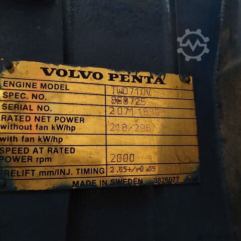 Двигатель: Volvo Penta TWD 710 V 218 кВт / 296 л.с. 6-цилиндровый дизельный двигатель