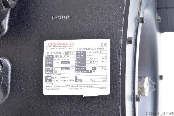 8113-000001b / 8113000001b, TF20.25-16B4 / TF202516B4, Синхронный двигатель Oswald Elektromotoren GmbH 47кВт, 500Нм, S1