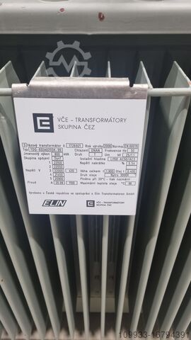 Производитель распределительного масляного трансформатора ELIN в лицензии, сделано в Чехии, 800кВА, 22/0,42кВ, Dyn1, ONAN, uk=5,54%, год выпуска 2006, исправное.