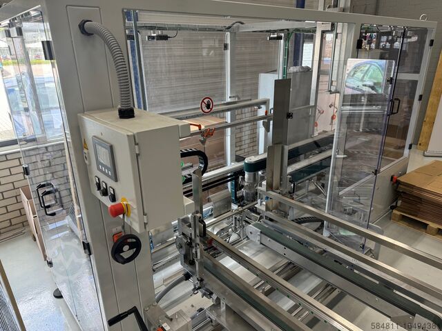 Скорость +/- 12 коробок в минуту, подходит для левосторонних американских складных коробок/Fefco 0200/0201, модуль клейкой ленты 50 мм