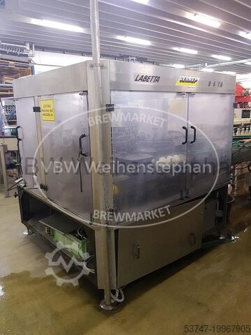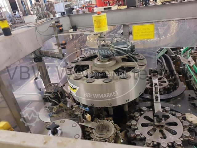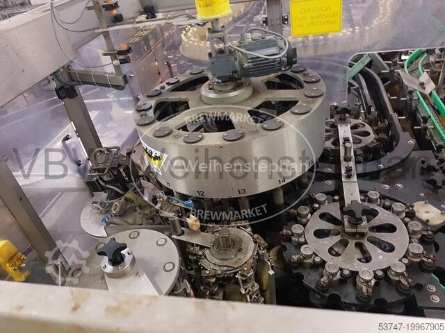 Оснащение: 2 агрегата холодного склеивания, каждая с клеевым насосом, электропривод регулировки по высоте, обнаружение разрыва, счетчик наработанных часов, подготовка к интеграции каплеструйной системы датирования, механическая ориентация для бутылок с пробкой swing-top