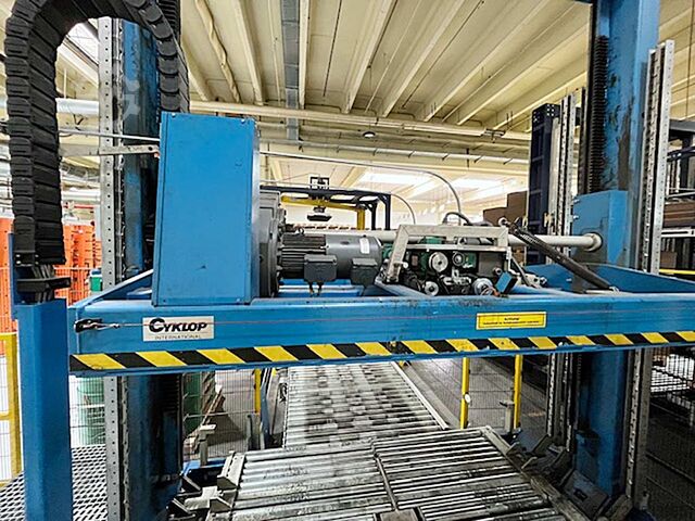 Доступна система непрерывной обвязки паллет Cyklop. Ширина пропускной способности: 2700 мм, высота пропускной способности: 2900 мм, скорость обвязки: прибл. 100 паллет/ч, мин. размеры паллет X/Y/Z: 600 мм/600 мм/500 мм, макс. размеры паллет X/Y/Z: 2000 мм/2450 мм/2000 мм, размеры машины X/Y/Z: прибл. 2000 мм/7200 мм/4300 мм, вес: прибл. 4000 кг. Включает дополнительную обвязочную головку, запайщик и различные двигатели. Доступна документация. Возможен осмотр на месте.
