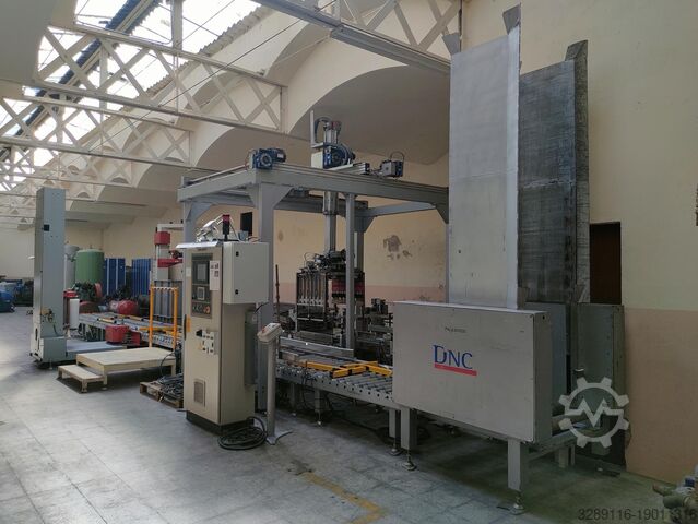 Машина для обмотки поддонов модели DNC LINE с моторизованными роликами, производительностью до 60 поддонов/ч.