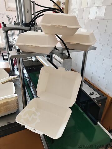 Продаётся машина для производства биоразлагаемых бумажных меню-боксов, включая 3 пресс-формы разных размеров и 5 тонн вырубленной бумаги трёх типоразмеров.