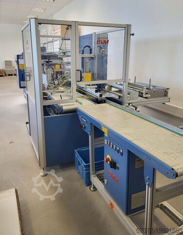 Область формата: 450 мм, ширина сварки: 500 мм, проходная высота: 220 мм, ширина пленки: 650/650 мм, макс. производительность: 120 изделий/мин, управление: сенсорная панель BVM, подключаемая мощность: 6 кВА, длина: 2035 мм, ширина: 1770 мм, вес: 780 кг, с термотоннелем BVM SC 4530 SD, ширина прохода: 450 мм, высота прохода: 300-400 мм, зона усадки: 800-2800 мм, мощность нагрева: 8,4-25,2 кВт, длина: 1640 мм, ширина: 450 мм, вес: 400 кг, подключаемая мощность: 18 кВА и роликовый аккумулятор BVM TB 400x1500, подключаемая мощность: 0,4 кВт. Общая длина: 9000 мм, общая ширина: 2000 мм. Возможен осмотр на месте, не подключена к электросети. Оборудование уже демонтировано и складировано.