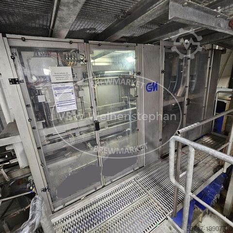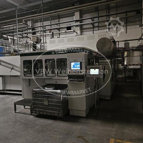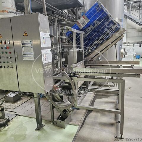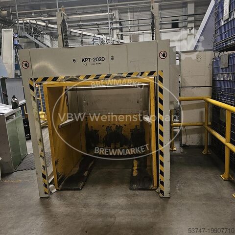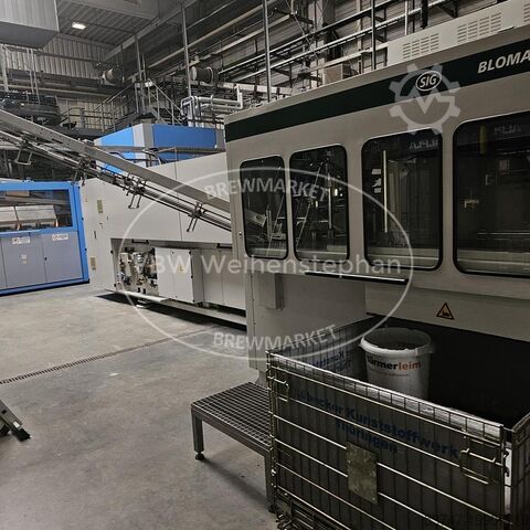 Комплектация: выбрасыватель бутылок, мойка ящиков, шредер, устройство подачи преформ, 2 выдувные машины, премиксер, дозатор Velcorin, агрегаты подачи и транспортировки крышек, ополаскиватель/розливщик/укупорщик, контроль уровня наполнения, этикетировочная и датирующая машина, упаковщик, свободные конвейеры для транспортировки ящиков и бутылок.