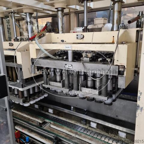 Оснащение: 2 головки по 2 рабочих органа для винтовых крышек, одна головка с 2 рабочими органами для корковых пробок, транспортёр для ящиков, стопор для ящиков с датчиком, концевой выключатель, обнаружение пробки, гидравлика, световые барьеры, гидравлический клапан, дверной выключатель, подключение сжатого воздуха, шкаф управления.