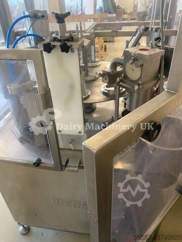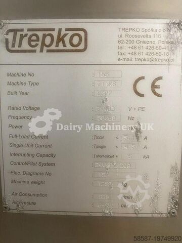 Trepko KS 211 — это одноручная машина для наполнения стаканчиков диаметром 95 и 75 мм. Привод осуществляется через индексную систему, что обеспечивает точное вращение стола и равномерное производство. Машина производит 2400 стаканчиков в час. Основные станции машины: выдача стаканчиков, наполнение, установка и запечатывание алюминиевой крышки. Затем стаканчики выводятся через конвейерную ленту. Управление машиной осуществляется через интерфейс ПЛК на внешней панели управления. Используется для фасовки пищевых продуктов, таких как сливки, йогурт, пасты, пудинги, вода, корма для животных и др.