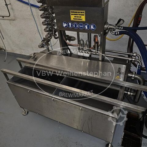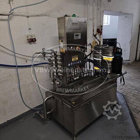 Оснащение: баки для щёлочи и горячей воды, электрический подогрев, редуктор давления для стерильного воздуха, 1 соединение для промывки KEG, щит управления с оборудованием для эксплуатации