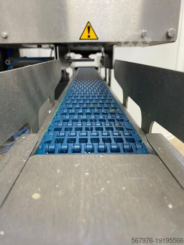 1 x изготовленный на заказ мобильный аппликатор крышек Denestech Industrial Automation с картриджем для снятия крышек. Используется для установки крышек диаметром 90 мм на пластиковые банки весом 350 г.
