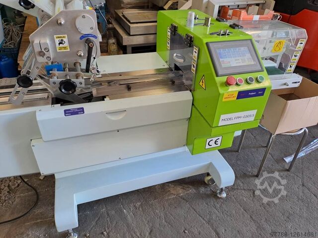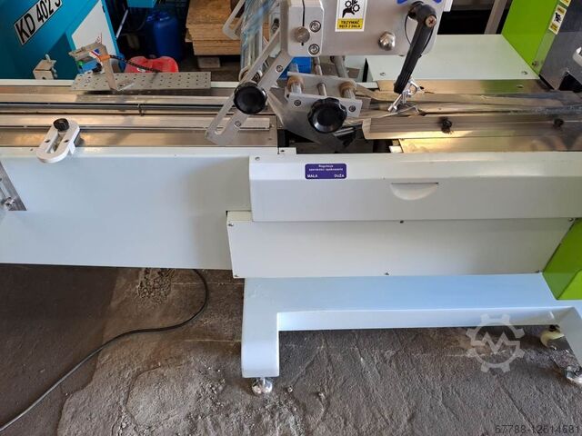Горизонтальная упаковочная машина Flow Pack, оснащенная двумя серводвигателями.