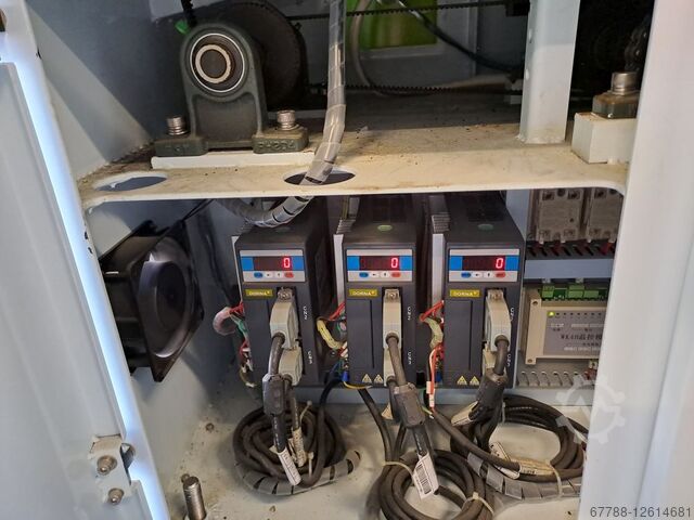 Управление: сенсорная панель, два инвертора, фотоэлектрический датчик, энкодеры и два серводвигателя.