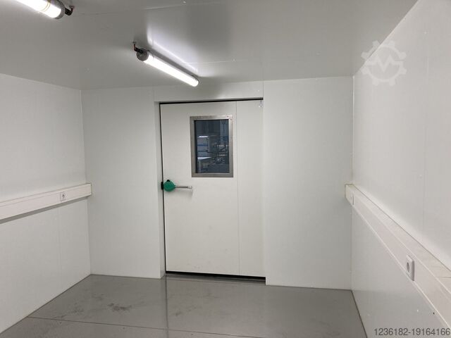 Мы продаем большую, просторную камеру для подогрева. Камера использовалась для 24-часовых испытаний на отказ электронных устройств при температуре 60°C. В связи с переносом производства в настоящее время продается. Температура в камере может регулироваться в диапазоне от 40°C до 80°C, постоянство +/- 1°C. Площадь камеры составляет около 13,5 м², объем — около 29,2 м³. Подробную информацию о размерах см. на прилагаемом чертеже размеров ниже.