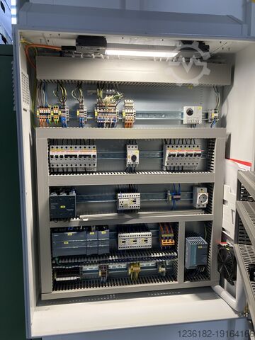 - Шкаф управления с контроллером Siemens S7-1200 с 7-дюймовой цветной сенсорной панелью, регистрацией и отображением данных, подготовлен для подключения к внешней сети, беспотенциальные коммутационные контакты
