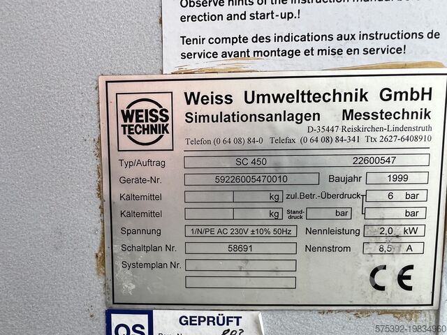 Продается встраиваемая камера соляного тумана/коррозионных испытаний от Weiss Technik, тип: SC/KWT 450