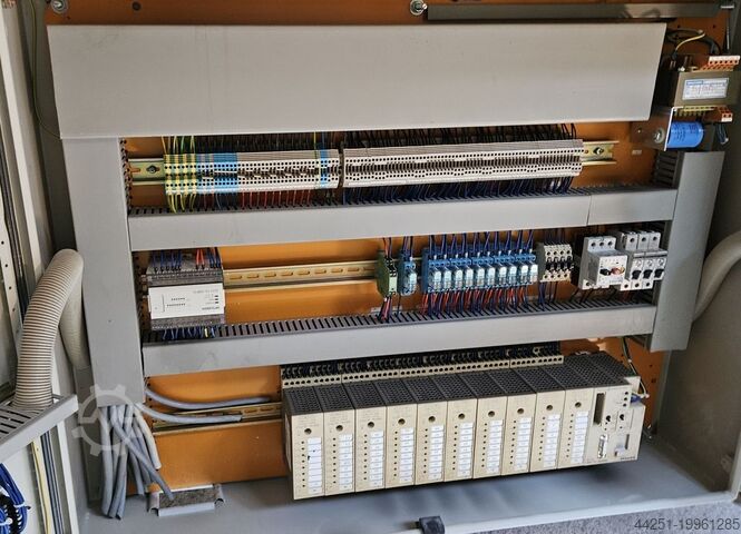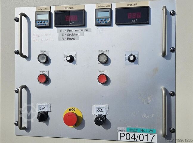 • 1 электрический шкаф: 2 преобразователя частоты SEW, ручной переключатель, аварийный выключатель, 2 кнопки ВКЛ., 2 кнопки ВЫКЛ., 2 индикатора частоты вращения, 2 потенциометра установки частоты, 2 счетчика циклов с функцией сброса и отключения