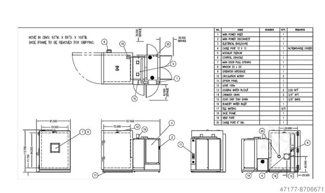 Внутренние размеры: Ширина 1829 мм Глубина 1829 мм Высота 2388 мм