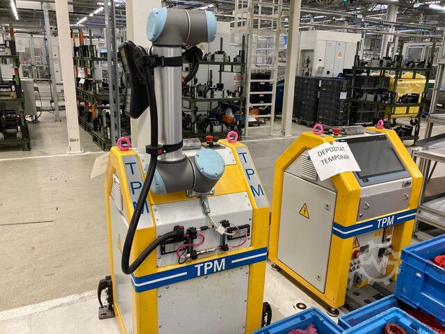 Испытательное оборудование, используемое для обеспечения качества и выпуска продукции в серийном процессе для завода по сборке коробок передач. Оборудование содержит универсального робота, систему камер и собственный блок управления. Оборудование может быть переучено для обеспечения требуемых операций клиента.