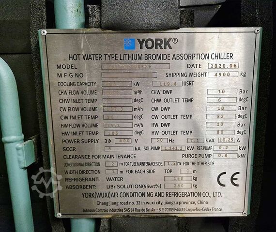 Холодопроизводительность: 420 кВт, подключенная нагрузка: 7,1 кВА, вес: 4,9 т, с градирней Baltimore Aircoil International TXV 237R и системой управления химводоочисткой Lohbeck DS6, с документацией, возможна проверка на месте.