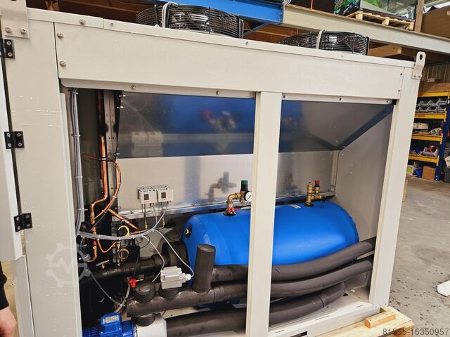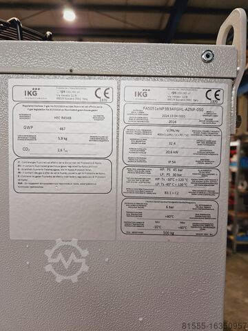 Серия FAS — это воздушно-охлаждаемые холодильные установки для промышленного применения. Монтаж осуществляется вне помещений. Оборудование FAS 096 включает: закрытый внутренний бак, насос 3 бара и спиральные компрессоры от производителя Bitzer. Используемый хладагент — R454B. В испарителе используется кожухотрубный теплообменник, встроенный во внутренний бак. Холодопроизводительность при 12/7°C и температуре окружающей среды 35°C составляет 68 кВт.