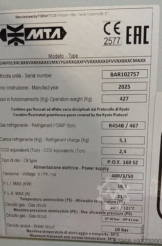 Neptune NEG 013N — это водоохлаждаемый чиллер для внутренней установки без гидравлического контура (насос, бак), включая подогрев картера и контроль фаз. Внешний градирня не входит в комплект поставки.