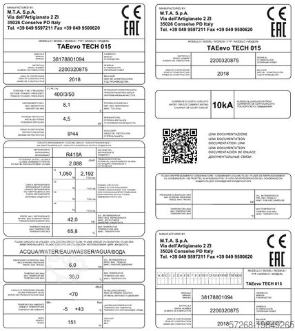 TAEevo Tech 015 P5-NF – компактные водяные чиллеры с воздушным охлаждением, предназначенные для наружной установки (от -5°C до +46°C). В комплекте: подогрев картера компрессора, контроль фаз, буферная емкость 60 литров, встроенный высоконапорный насос P5 и испаритель в исполнении NON FERROUS (нержавеющая сталь/без черных металлов).