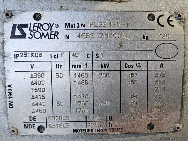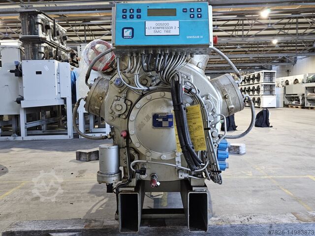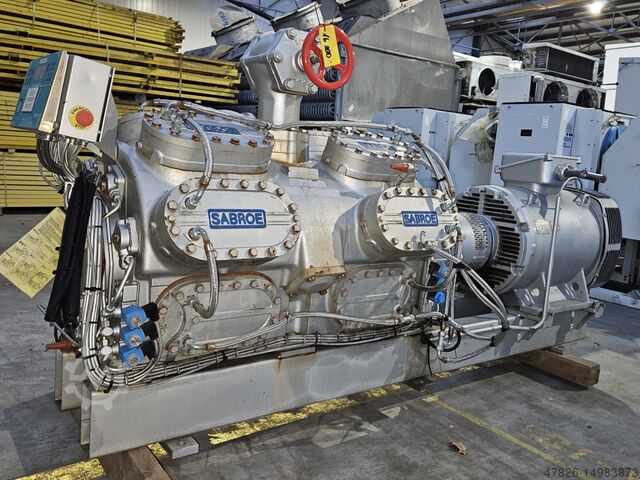 Б/у поршневой компрессор Sabroe SMC 116 E на NH3 (аммиаке). Укомплектован электродвигателем Leroy Somer PLS315M-T - 50/60 Гц - 200/230 кВт - 1460/1760 об/мин. Производительность компрессора составляет 1357 м³/ч.