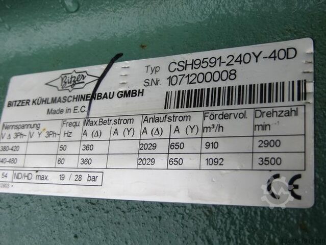 Винтовые компрессоры BITZER CSH9891-240Y 40 d, R134a, R404a, R407A/C/F, R507, ss, хорошее состояние.