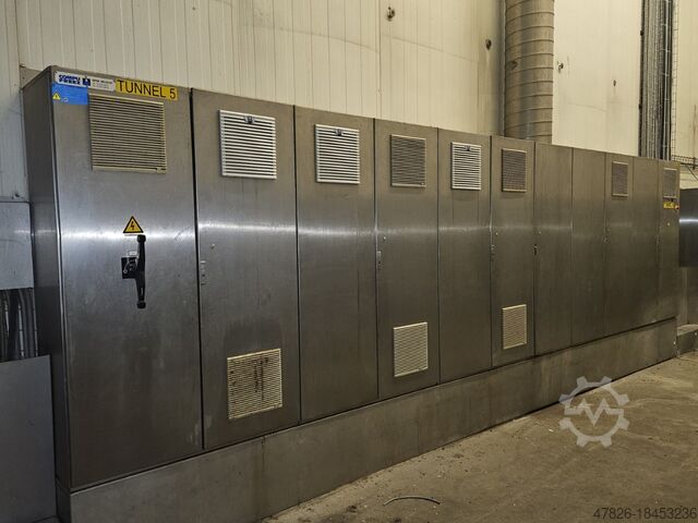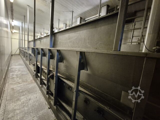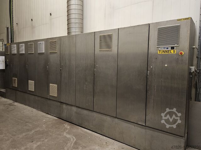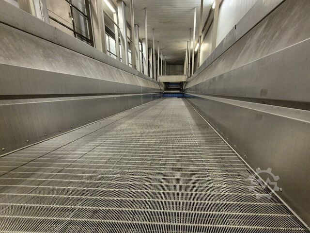 Общая длина ленты составляет 21,6 метра, при этом эффективная длина ленты составляет 18,8 метра, а длина подающей ленты — 2,8 метра. Морозильник оснащен 10 центробежными вентиляторами, которые приводятся в действие электродвигателем мощностью от 37 кВт до 15 кВт. Эти вентиляторы проталкивают воздух через ленту снизу, что делает этот морозильник настолько эффективным и гарантирует, что продукт не замерзнет на ленте.