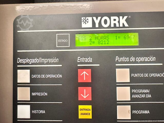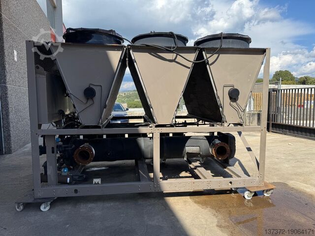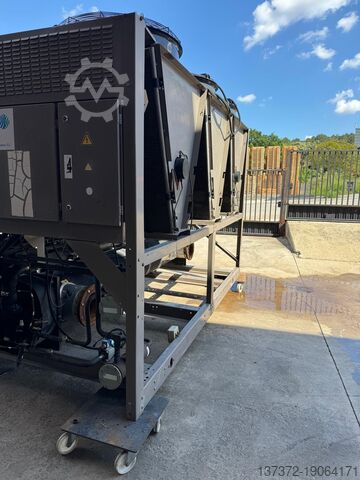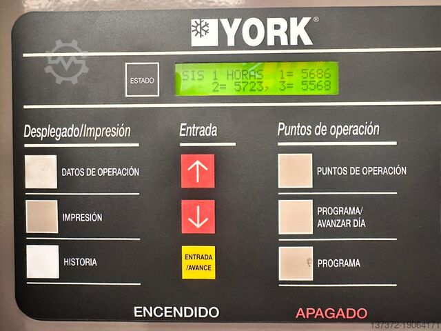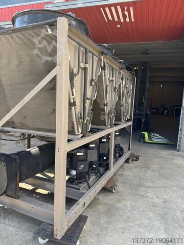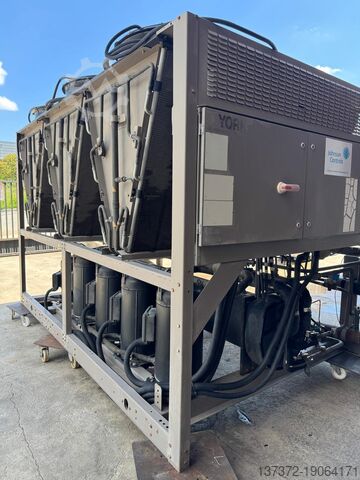 1 York, Johnson Controls, водоохладитель, модель: YLAA0390HE, 390 кВт, (335 400 фригорий) газ R-410, 5 спиральных компрессоров, трубчатый теплообменник, Размеры: 3690 x 2242 x 2393 мм высота, Вес: 2805 кг, с 6 осевыми вентиляторами.