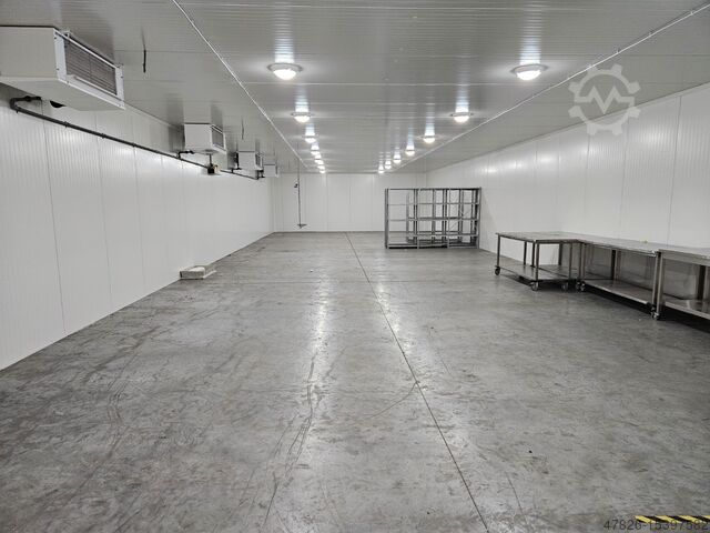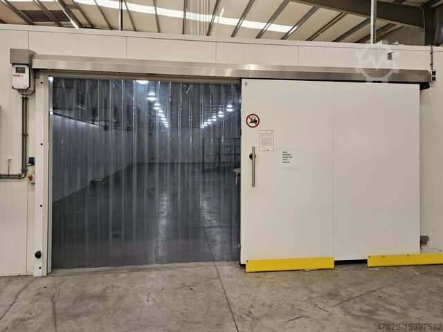 Одна холодильная камера с толщиной панелей 100 мм и коэффициентом изоляции RC 5,21. Кроме того, холодильная камера оборудована электрической раздвижной дверью и тремя детекторами газа Bachara MGS 450/CO2. Один для машинного комплекта и два для холодильной камеры. Температура в холодильной камере +-4°C.