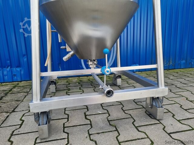 Бывший в употреблении резервуар с мешалкой и двойной рубашкой на колесах