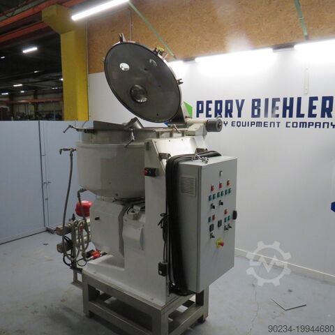 Б/у смеситель из нержавеющей стали HAAGEN и RINAU с электрическим подогревом – тип RUVI200. Общий объем: 300 литров. Полезный объем: 200 литров. Мешалка: 1 лопасть, 2 скребковых рычага. Ёмкость Ø 900 мм x средняя высота 510 мм. 2 двигателя. Двойная рубашка с электрическим нагревом 2 x 9 кВт. С электрическим шкафом.