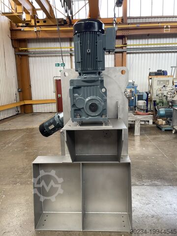 В комплекте также: боковой измельчитель из нержавеющей стали с приводом от двигателя 4 кВт. Подъемник для тары (макс. 150 кг) и 2 контейнера из нержавеющей стали.