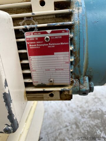 Двигатель: 7,5 кВт, 1450 об/мин, 415 В, 3/50 через редуктор Opperman типа HTM7 с передаточным числом 38,2/1, выход 37 об/мин