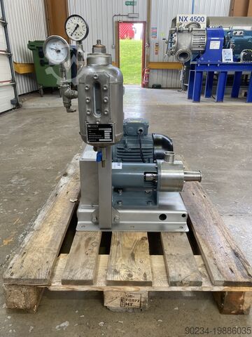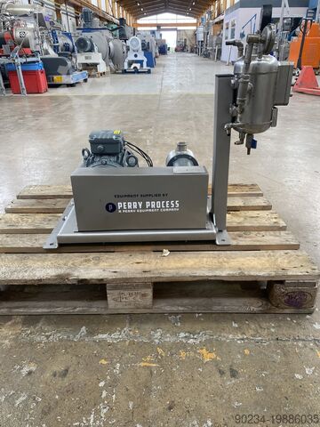 Полностью протестированный, бывший в употреблении inline-диспергатор Netzsch Max Shear 3. Включает в себя inline-смеситель из нержавеющей стали с прорезной дезинтегрирующей головкой диаметром 76 мм, напрямую приводимой от двигателя 4 кВт 3/50 2885 об/мин. Также имеется двойное механическое уплотнение с герметичным баком объёмом 2,6 литра, рассчитанным на 10 бар при 60°C. Установлен на раме из нержавеющей стали.