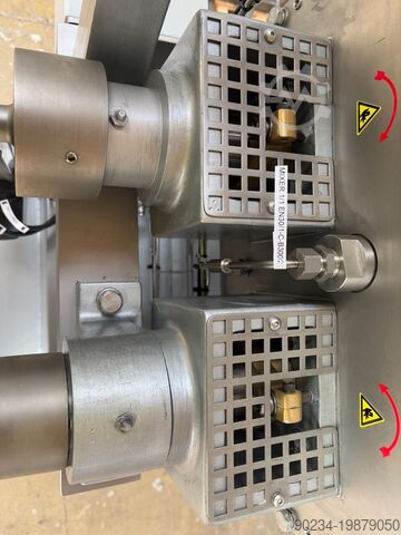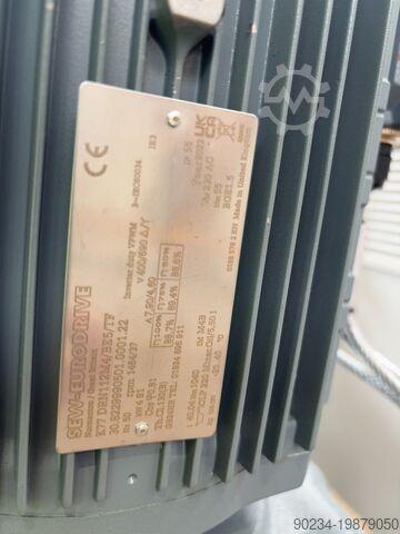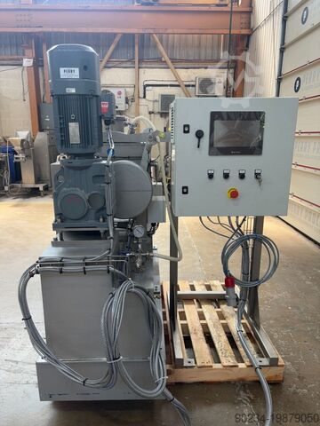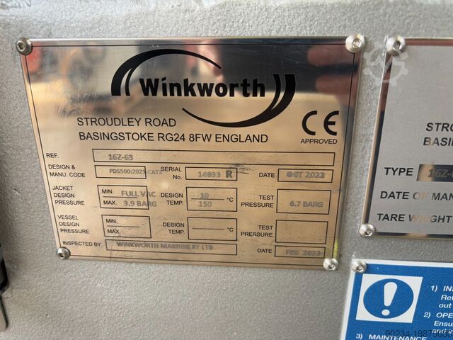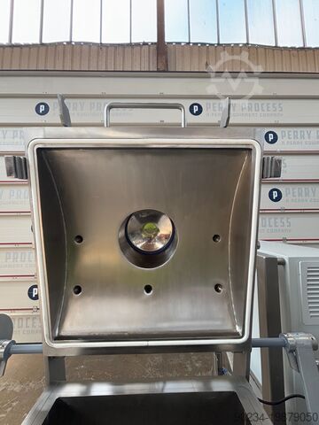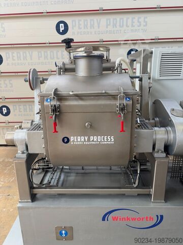 Согласно отчетам, не использовалась после восстановления: Z-образный мешалка-миксер Winkworth модель 16Z-63 из нержавеющей стали. Смесительный желоб ок. 400×400×350 мм (глубина). Все детали, контактирующие с продуктом, выполнены из нержавеющей стали 316/316L. Примерная рабочая вместимость: 27–36 литров (в зависимости от продукта). Две Z-образные мешающие лопасти из 316/316L, приводимые в движение мотор-редуктором на 4 кВт, 3/50, 1464/37 об/мин. Устройство оснащено шарнирной вакуумной крышкой из нержавеющей стали с прижимами. Внешняя рубашка из нержавеющей стали 304/304L, рассчитана на рабочее давление 3,5 бар при 150°C. В комплект входит электрически управляемый механизм опрокидывания для выгрузки. Также в комплекте чиллер ICS Cool Energy Ltd модель iC220. Панель управления для работы смесителя и чиллера.